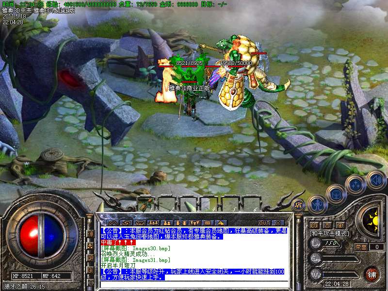 【特色9】;散人淘宝地图是个很不错的地方,怪物好打,偶尔可以爆出:残阳,凌云,甚至是雅典装备。