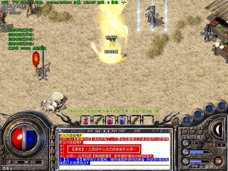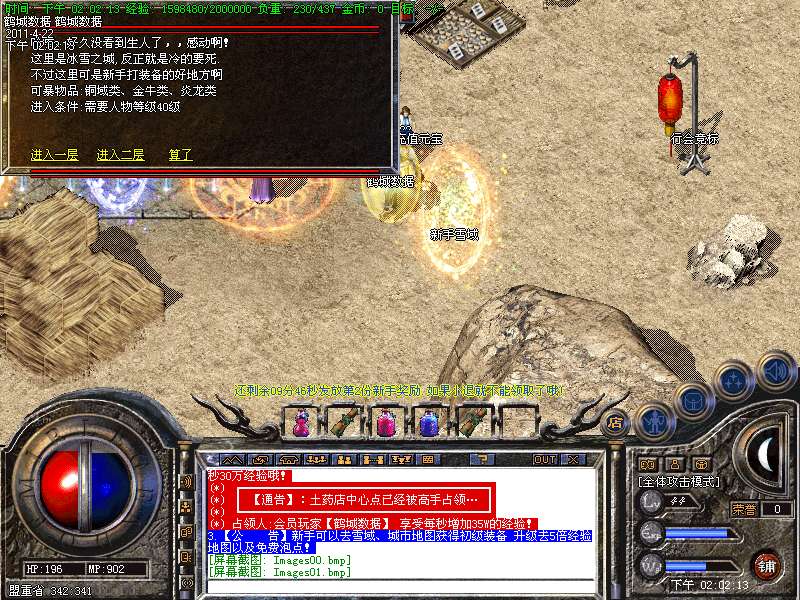 3.【公 告】新手可以去雪域、城市地图获得初级装备 升级去5倍经验地图以及免费泡点!
