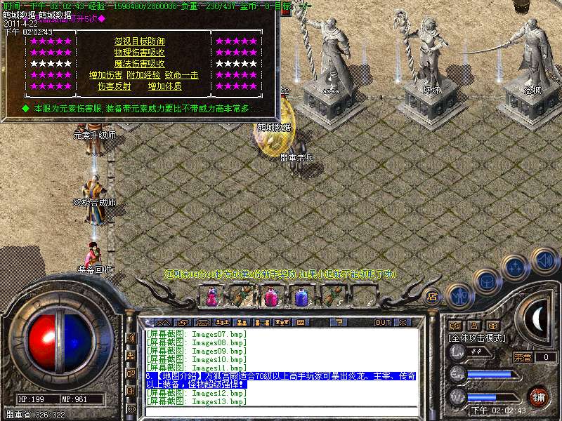 1.【公 告】本服属1.85升级至1.89热血元素内挂更新到盛大最新装备绝对不BT,适合散人玩家满级为110级。
