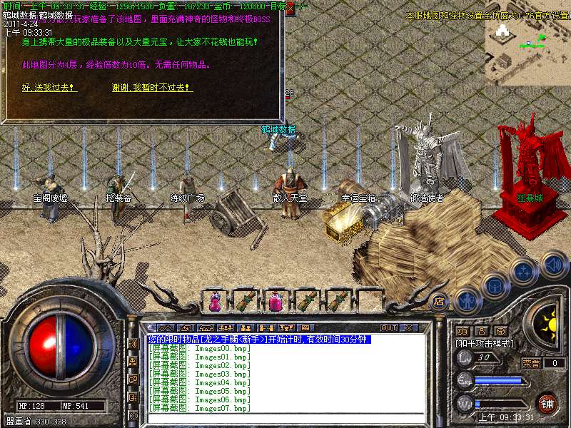 特别地图:王者天堂为打宝天堂,每天16点开放.此地图任何大小怪物都可以有机率暴出赤月类装备和精品首饰、终极武器!