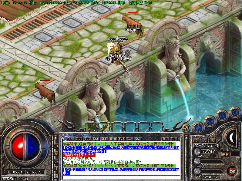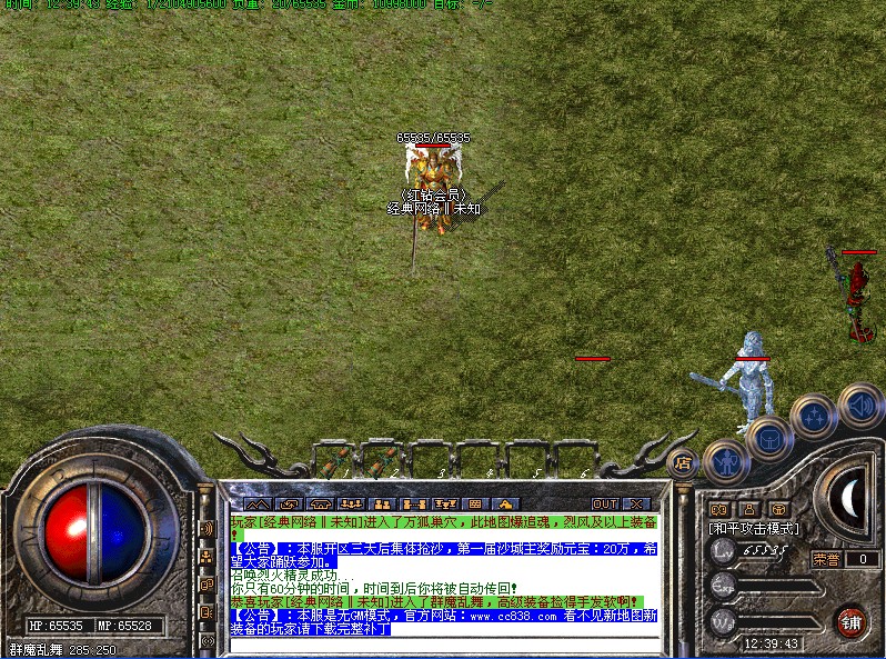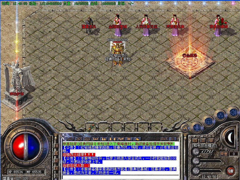 【公告】:行会战场两小时举行一次,可以进去半个小时,每30秒增加100点荣誉值和300万经验,荣誉值可以直接换元宝。