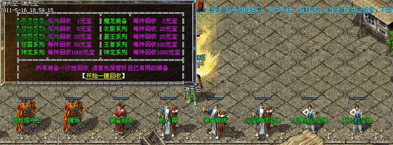 一切免费到底,元宝圣地可免费打元宝,所有装备都可以回收成元宝。