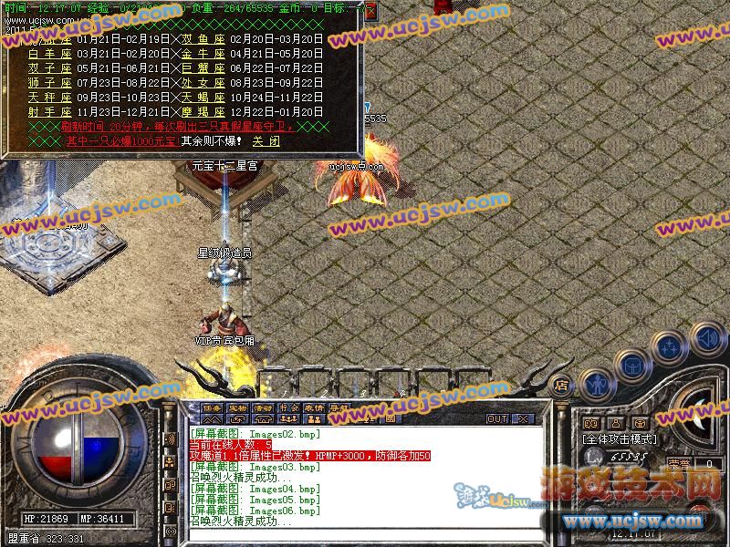 【更新】增加12星座,每20分钟每个星座刷3只守卫,其中一只为真,杀死必爆1000元宝!!