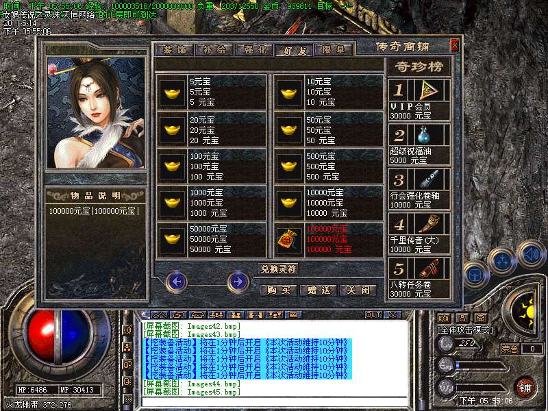 ⑦-考虑到众多的免费玩家,版本大量下调收费的价格,比一般的私服下降了一半,只要你们肯花上时间,元宝装备将数之不尽!