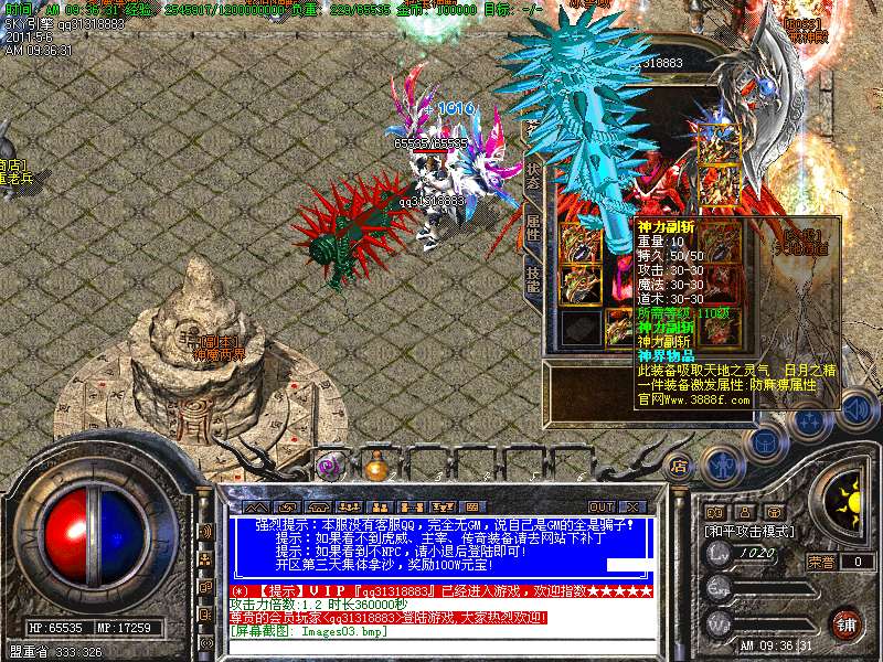 【更新】财富劫阵,BOSS爆出财富神石可以启动财富阵,启动的同时可以随机获得元宝!!满188层土药将会出现大量的元宝!!具体请查看土城财富劫阵NPC!!