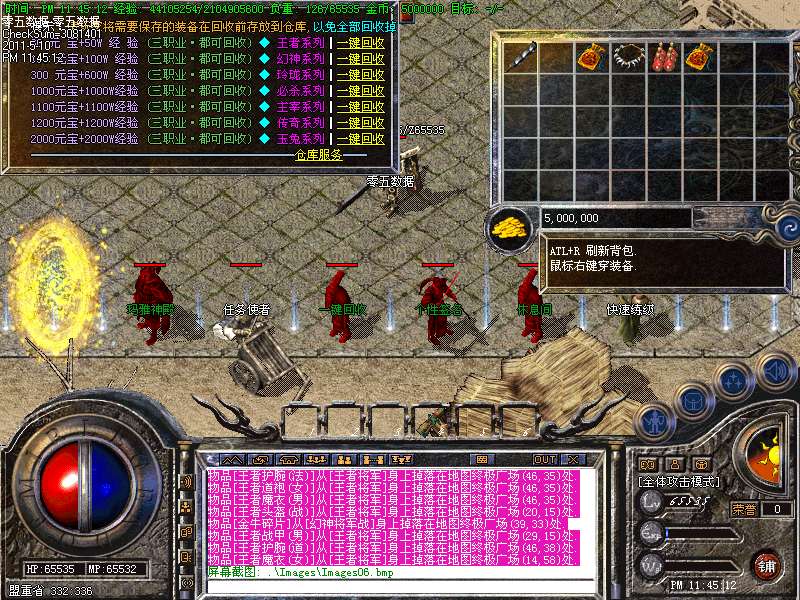 游戏介绍⑥: 地图多多,装备狂爆,元宝好打,一键回收。