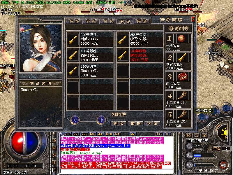[贵宾玩家]:免费进入任何收费地图,每天领取4000元宝津贴,贵宾封号任意取,免费贵宾染色!