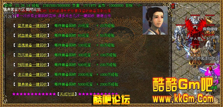 10 本服4个高级地图,可爆出烈风,残阳,凌云装备,进入条件很简单,专为免费玩家开放的。