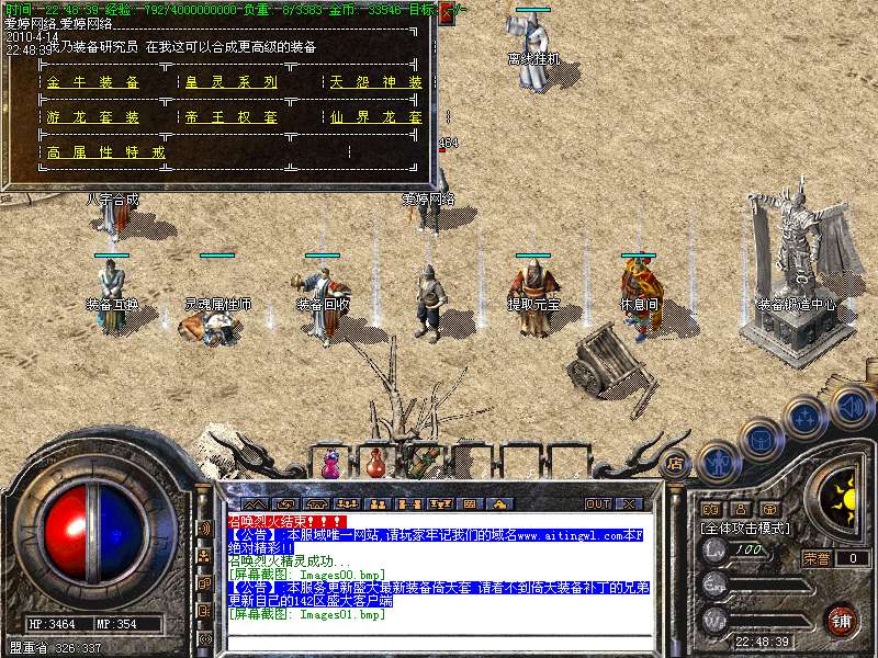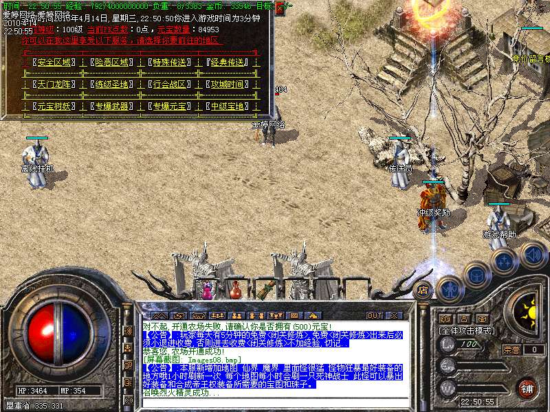 游戏特色:本服游戏里面有超完美的东南西北赌博系统. 玩家还可以根据自己的在线时间,免费领取相对的元宝.设计完全参照非RMB玩家的需求.. 游戏里还有 万能格 NPC 是考验您智商的地方. 四十个问题.您敢回答么? 有钱是爷, 那么, 没钱就杀爷吧.