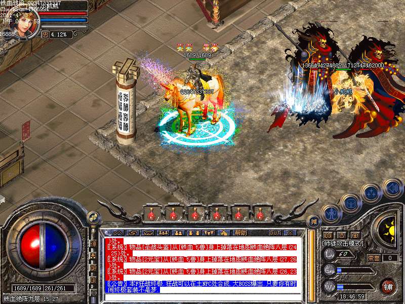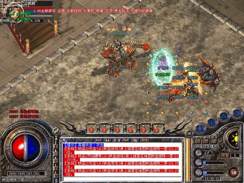 铁血神殿.魔阵.爆所有装备.希望玩家用于挑战.战马合成材料由魔境为暴出