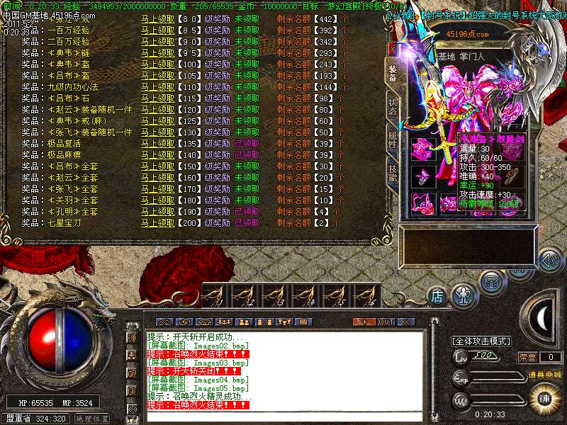 【新手上线】平衡了三职业!人物上线就送新技能和大量财富包括元宝!升级无需打怪!泡点直接到顶级!.