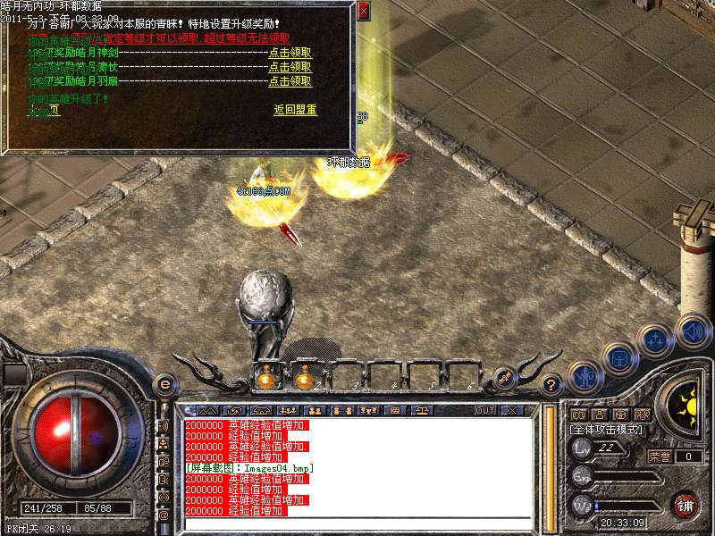 [255,249]攻城奖励:晚上22:01-22.30可以自行在沙皇宫领取奖励.攻城奖励为128W元宝!