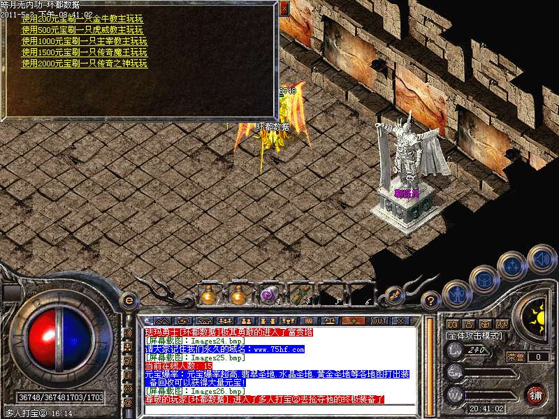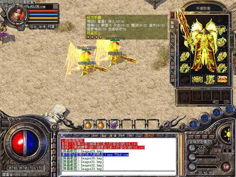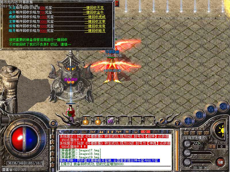 [255,249]元宝爆率:元宝爆率超高.翡翠圣地.水晶圣地.黄金圣地等各地图打出装备回收可以获得大量元宝!