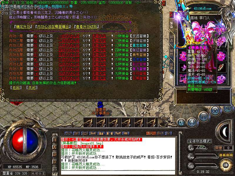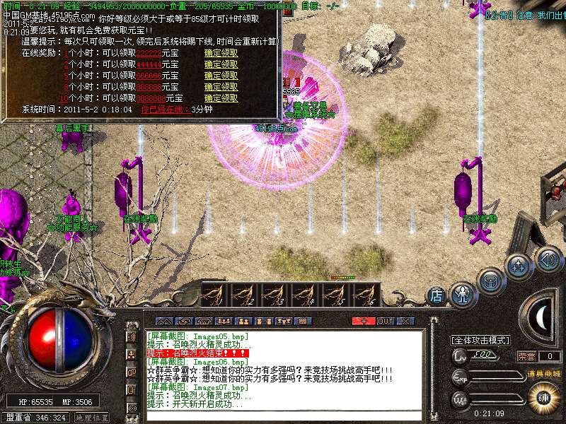 【新手上线】平衡了三职业!人物上线就送新技能和大量财富包括元宝!升级无需打怪!泡点直接到顶级!