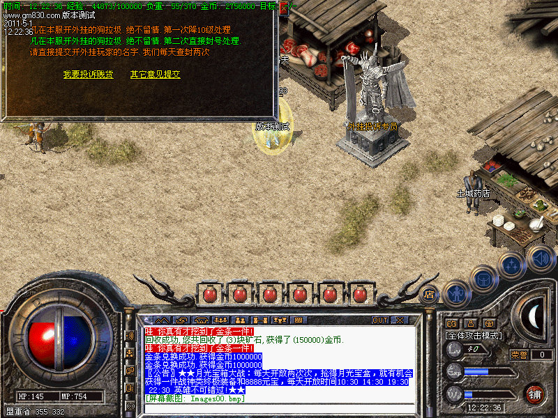 - ☉ 热血传奇单机版V176怀旧复古智能假人攻沙陪玩单机一键安装GM后台免虚拟机