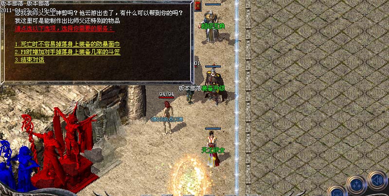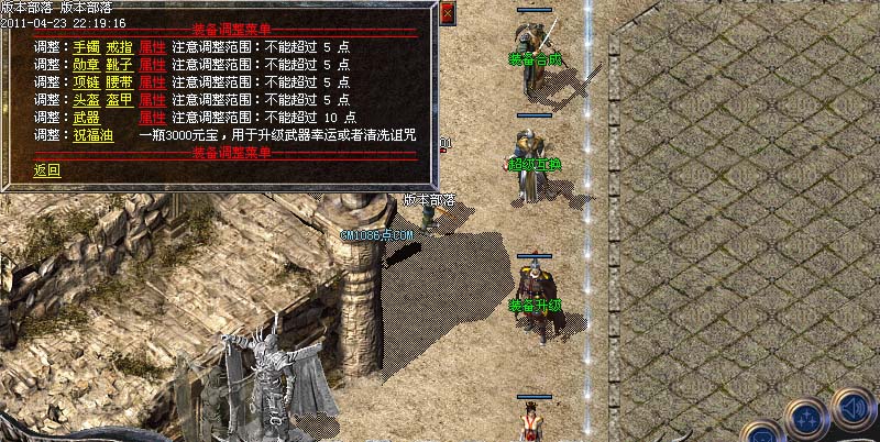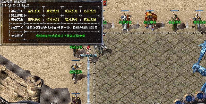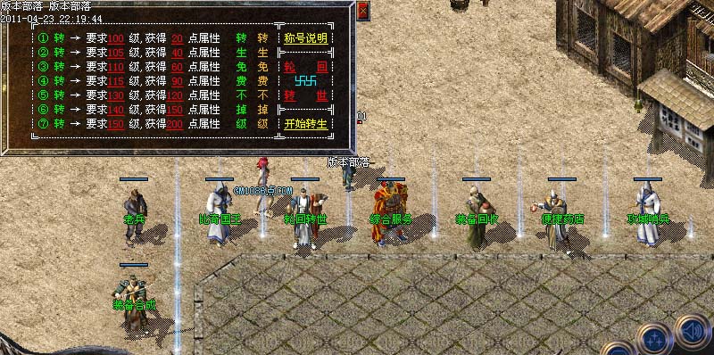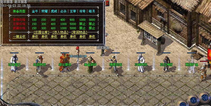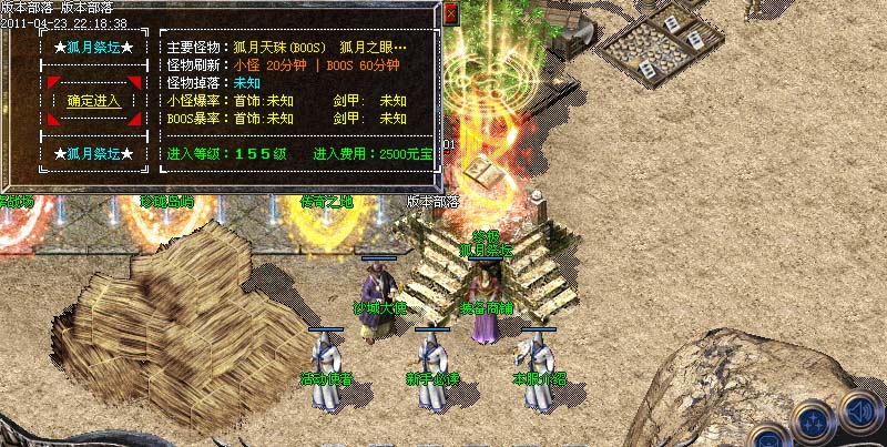 ②战后补给:每晚攻沙后22:30--23:30在[土武器店门口]附近每隔5分钟发放1W元宝、1000W经验卷