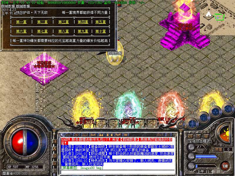 [250,0]【新手上线】平衡了三职业!人物上线就送新技能和大量财富包括元宝!升级无需打怪!泡点直接到顶级!.