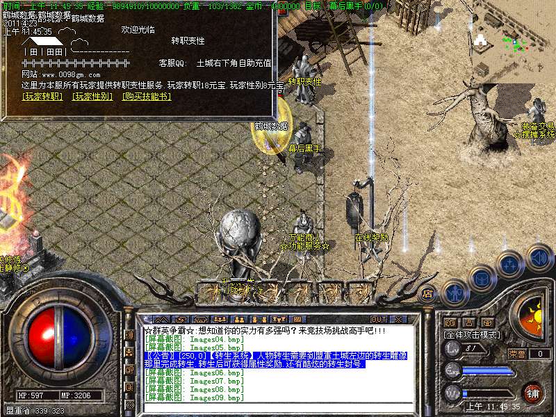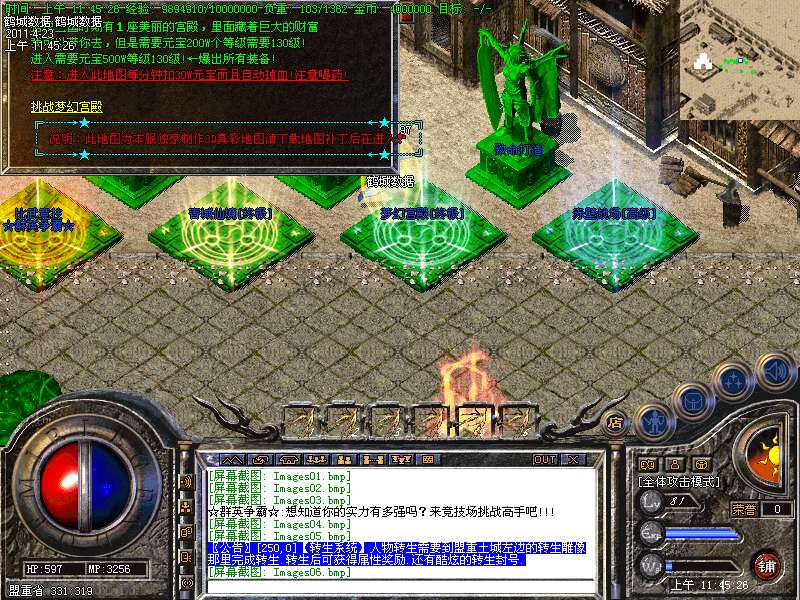 [250,0]【转生系统】人物转生需要到盟重土城左边的转生雕像那里完成转生.转生后可获得属性奖励.还有酷炫的转生封号.