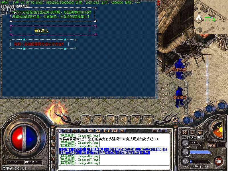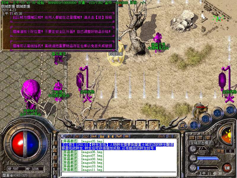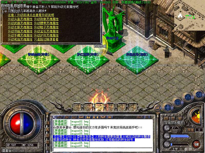 【转生系统】人物转生需要到盟重土城左边的转生雕像那里完成转生.转生后可获得属性奖励.还有酷炫的转生封号和名字变色.