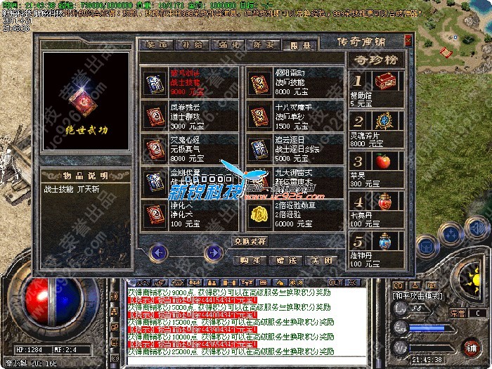 22.噬魂系列装备可打中级地图和高级地图小怪暴出;五倍经验卷可通过元宝教主之家的经验书使者获得;技能书可以通过专暴技能地图获得