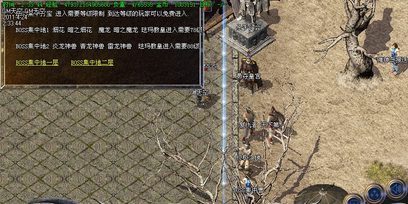 BOSS集中地:进入要求一层78级 刷 魔龙教主 暗之魔龙教主 珐玛教皇暗之赤月老魔 各种小BOSS