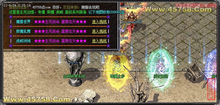 每半小时启动全服挑战心魔,在行会PK室暴全服所有装备。机会不要错过!