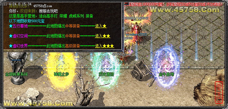本服务器新区首次拿沙奖励城主1000000元宝!沙奖励在22点5分至22点15分领取!