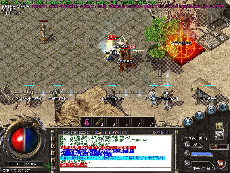 盟重土城设有经验猪`可免费获得经验`有赤金树`可免费获得元宝及宝箱`定时刷元宝大怪`打死可获得超多元宝`