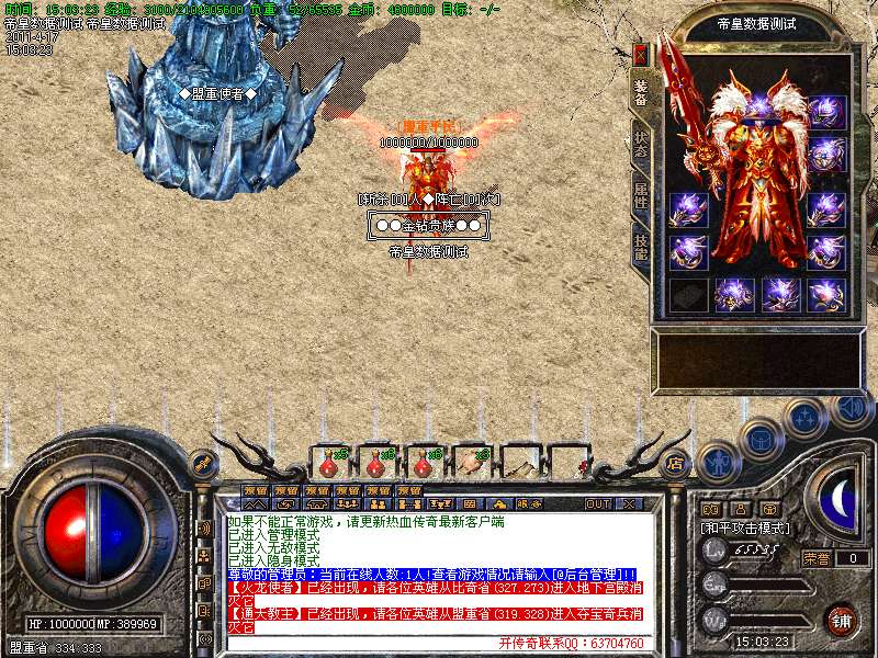 永久属性:从[比奇省]进入“玄冥冰原”找到“镇妖之神”他会帮你用不同的金针打通五重经络提升人物英雄暴击