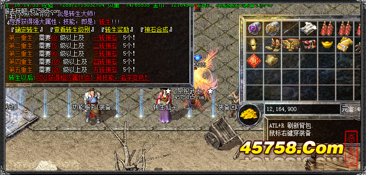 【更新】更新转生系统,1-5转,转生后每转都可以获得相应属性点,每转可获得强悍技能.详情请看转生仙子!