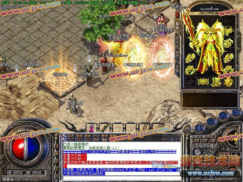 本服新区开区第3天功沙奖励88888元宝!以后天天功沙奖励20000元宝!! 本F为防止外援特设置没48级不可以进皇宫!