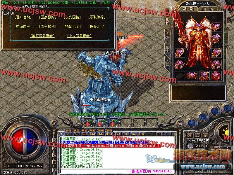 各种活动:在苍月岛,每小时会出现一只魔王,杀死魔王获得它的首级后,上交给丞相可获得1000元宝,或上古遗物一件