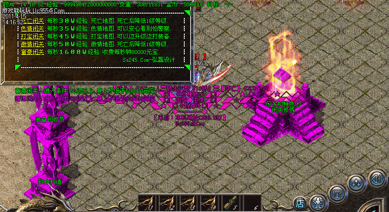 【特色闭关】为大家精心安排了、死亡闭关、激情闭关、激情电影闭关、富豪闭关、新人打宝闭关
