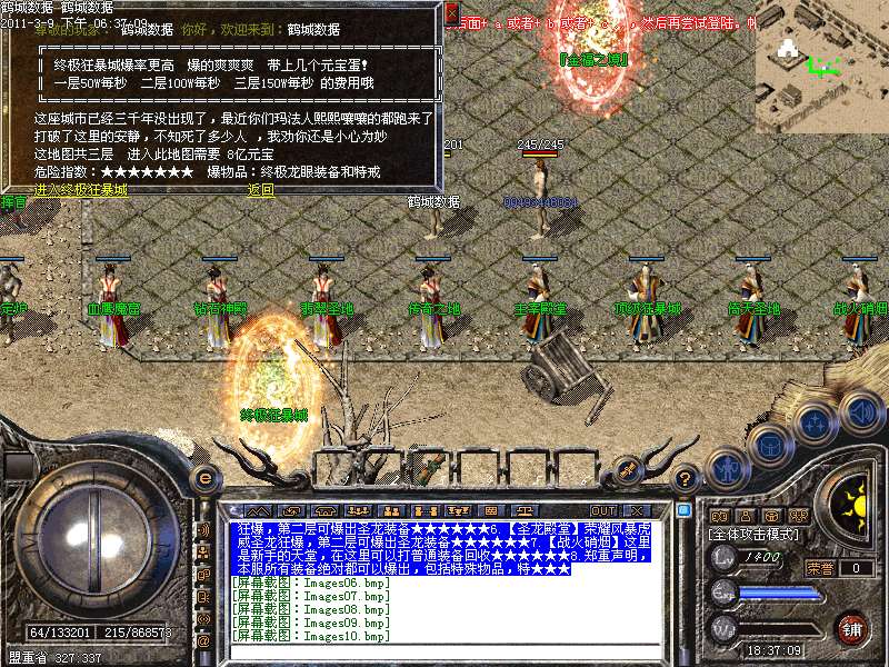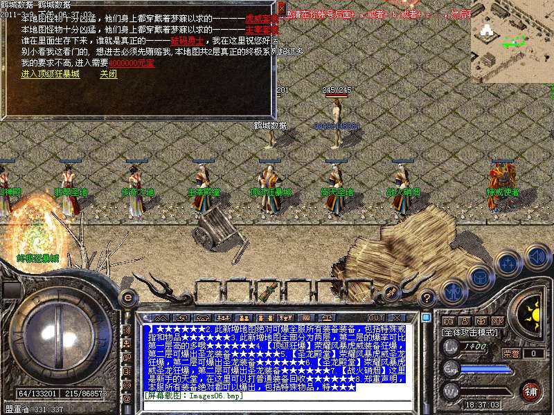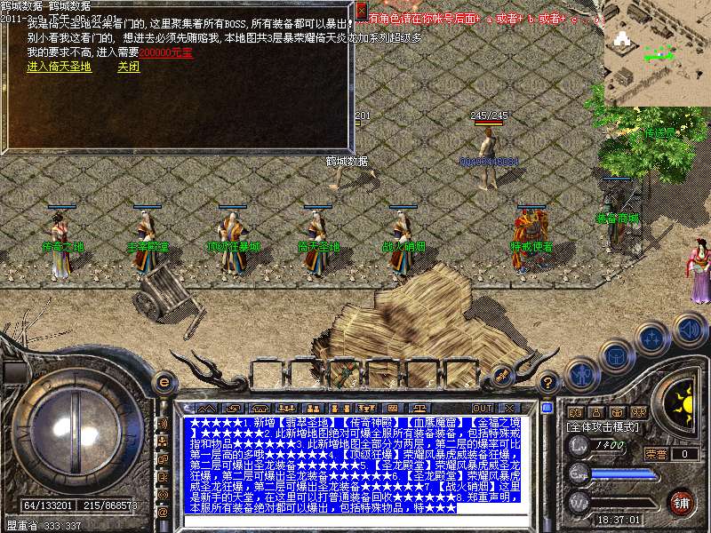 *★★★★★★★★★★ 地 图 介 绍 ★★★★★★★★★★★★★★★★1.新增【翡翠圣地】【传奇神殿】【血鹰魔窟】【金福之境】★★★★★★2.此新增地图绝对可爆全服所有装备装备,包括特殊戒指和物品★★★★★★3.此新增地图全部分为两层,第二层的爆率可比第一层高的多哦★★★★★★4.【顶级狂爆】荣耀风暴虎威装备狂爆,第二层可爆出圣龙装备★★★★★★5.【圣龙殿堂】荣耀风暴虎威圣龙狂爆,第二层可爆出圣龙装备★★★★★★6.【圣龙殿堂】荣耀风暴虎威圣龙狂爆,第二层可爆出圣龙装备★★★★★★7.【战火硝烟】这里是新手的天堂,在这里可以打普通装备回收★★★★★★8.郑重声明,本服所有装备绝对都可以爆出,包括特殊物品,特★★★