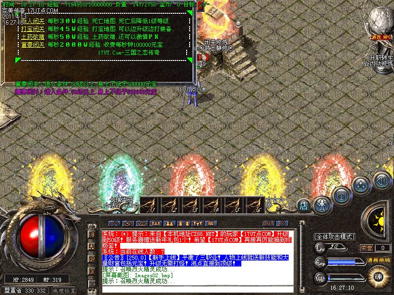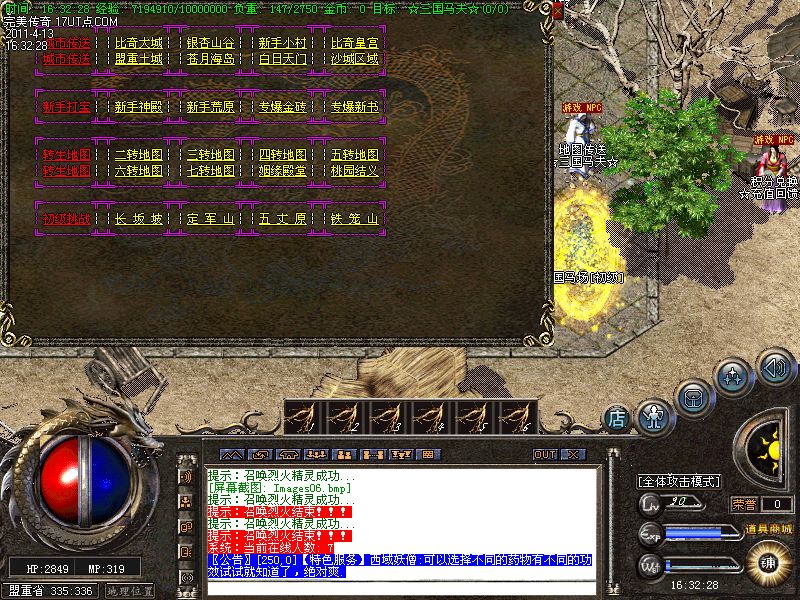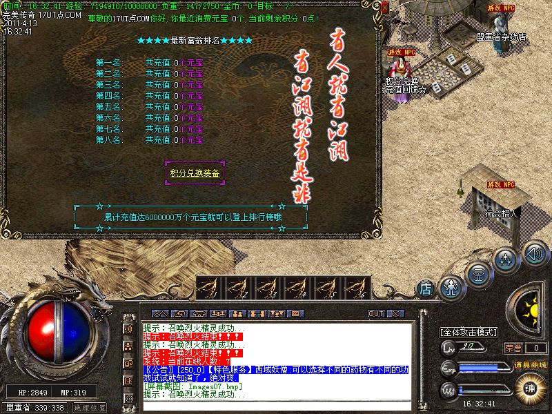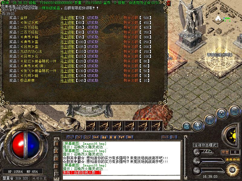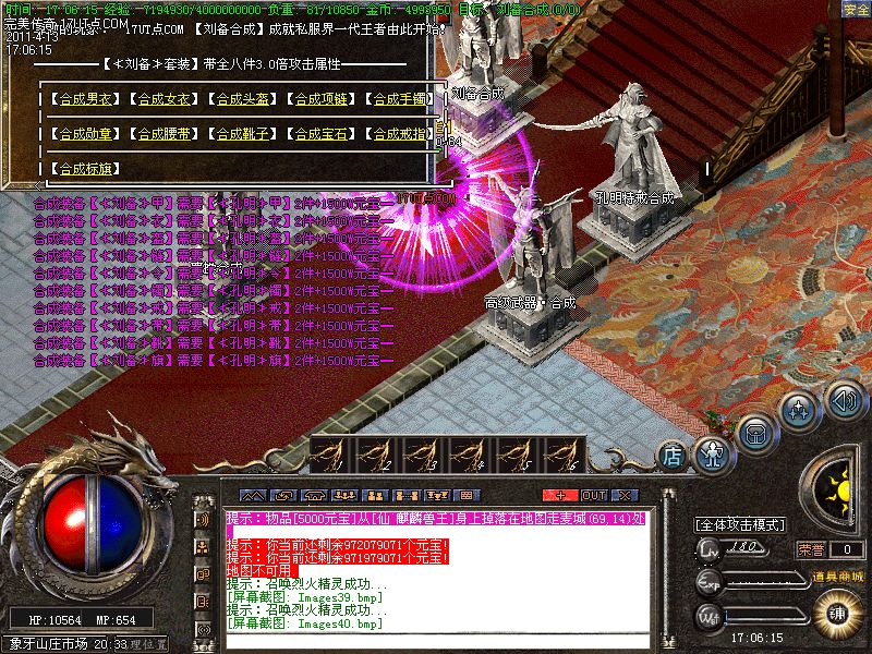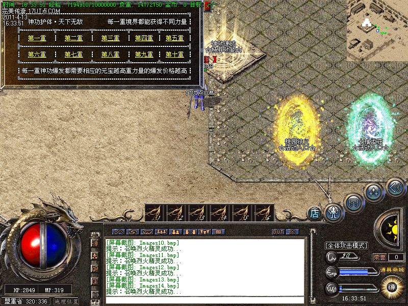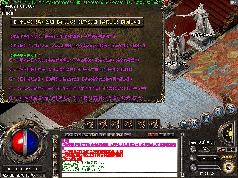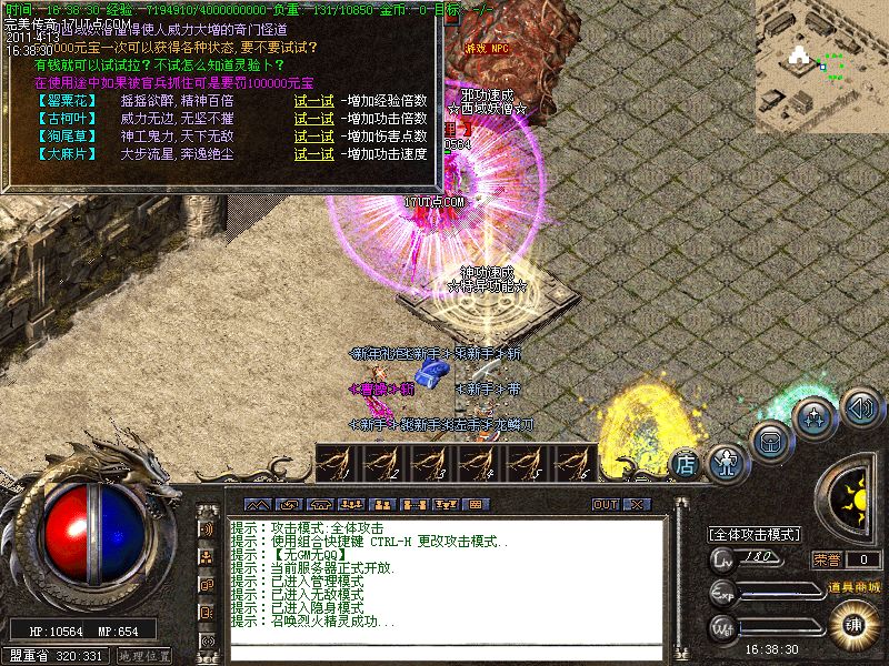 【新手上线】平衡了三职业!人物上线就送新技能和大量财富包括元宝!升级无需打怪!泡点直接到顶级!