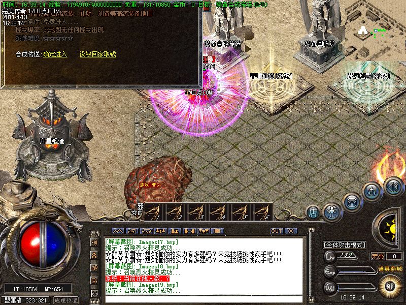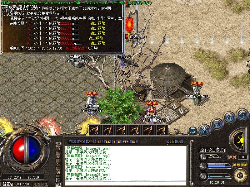 【转生系统】人物转生需要到盟重土城左边的转生雕像那里完成转生.转生后可获得属性奖励.还有酷炫的转生封号和名字变色.