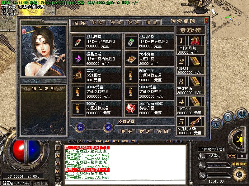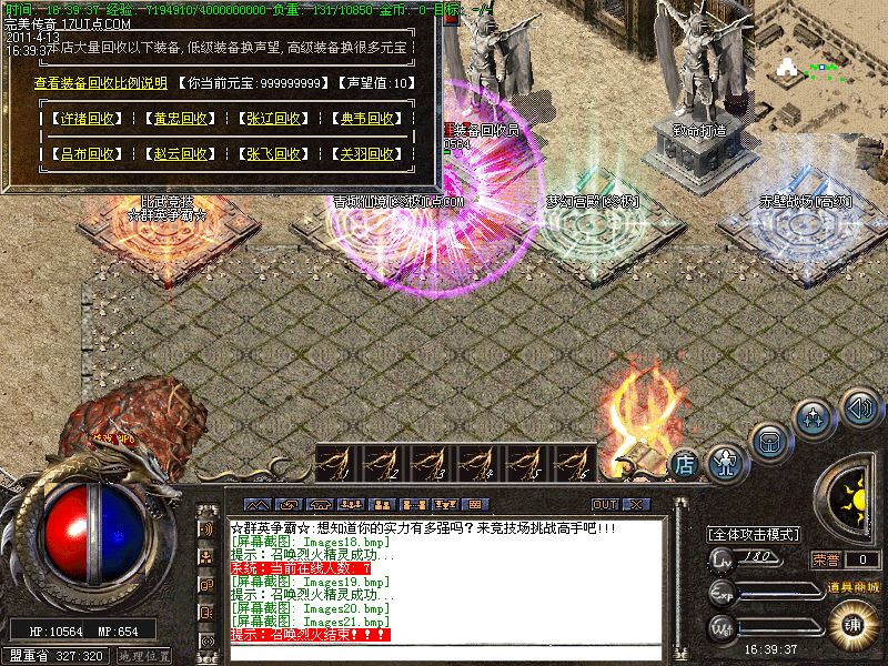【装备回收】转生装备每个阶段的装备都能在土城NPC那里回收!换的声望-经验-元宝!所以请大家不要乱扔装备.