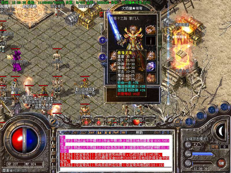 2 装备属性:必杀套增加魔攻道1倍,主宰套增加魔攻道1.1倍,传奇套增加魔攻道1.2倍