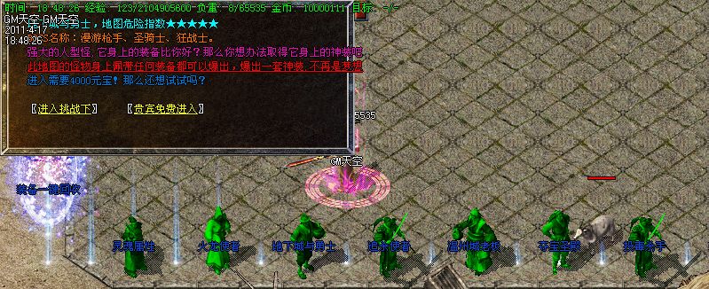 [普通玩家]:在每个盛大地图的最后一层和六个刷暗之怪物的地方 每小时会刷出一只大傀儡 它会爆出你意想不到的好装备哦 傀儡装备值得你拥有!