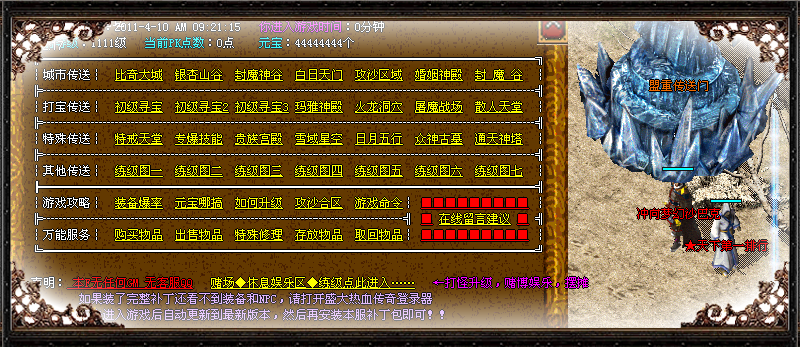 【更新】增加娱乐休息间,从传送员处进入,内设博彩系统,经验猪系统,升级娱乐2不误!!