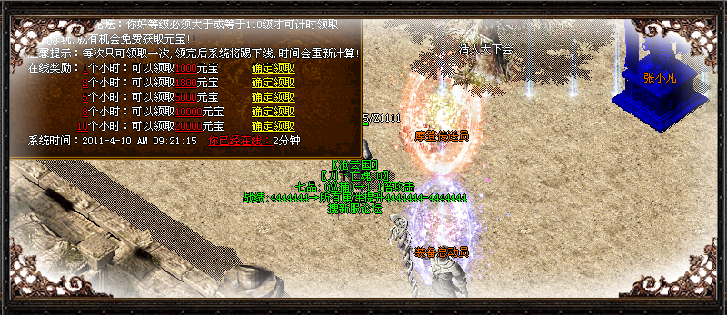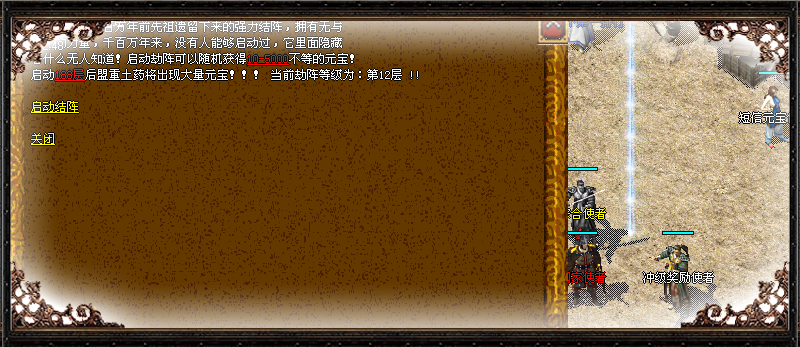 【更新】财富劫阵,BOSS爆出财富神石可以启动财富阵,启动的同时可以随机获得元宝!!满188层土药将会出现大量的元宝!!具体请查看土城财富劫阵NPC!!