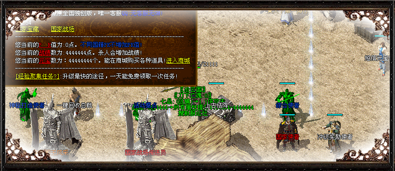 杀害不同国籍的玩家不但不会增加PK值,在战场里还会有战绩的奖励!