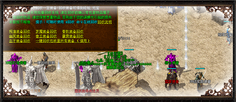 打到多余的装备千万别丢掉,在国家使者处可换取经验或元宝!