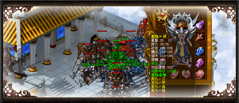 【公告】服务器提高了全服暴率,一些新地图的怪物暴血牙,而三万点血以上的十几种怪物,暴终极复仇,且暴率非常高,服务器,每天还不定期举行各类活动!!!