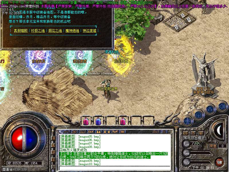 本服基本装备爆率非常高,新手可以先到祖玛混套极品.!