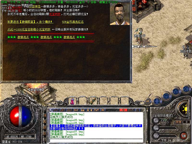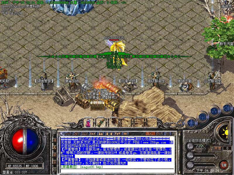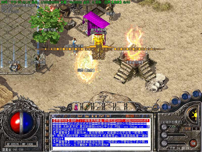 【新手介绍】非RMB玩家,去[装备狂暴.新手天堂.四界.各国风情]打怪爆装备,可回收大量元宝!可以爆到王者、金牛、炎龙、荣耀、必杀.主宰 装备!