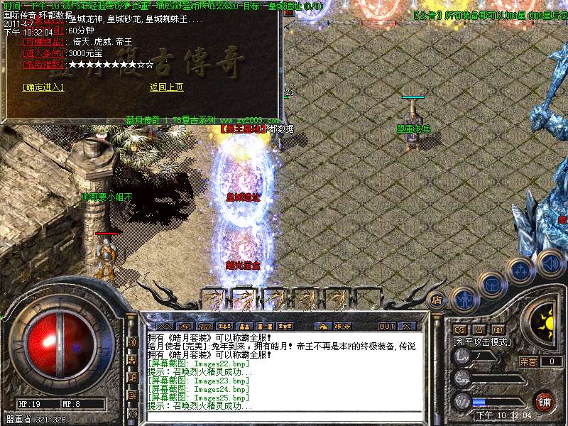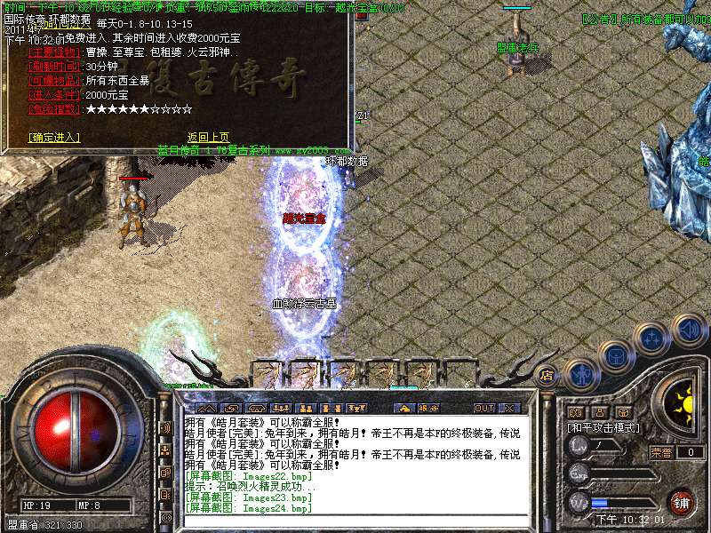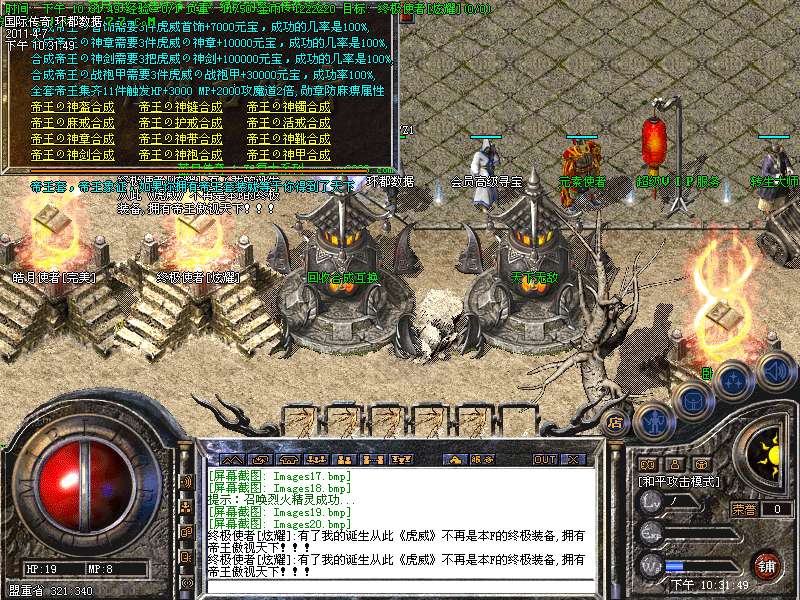 四:进入各类元宝传送地图爆高级装备。(帝王、号令、皓月)