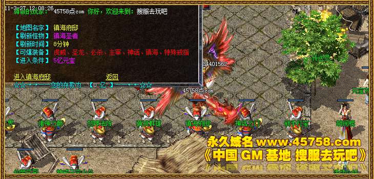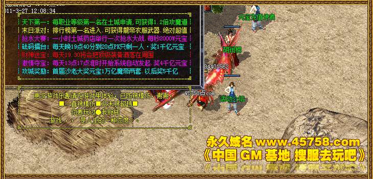 玛法争霸:15点,土城左上角进入,最后一个离开获得(主宰碎片2)和20亿元宝