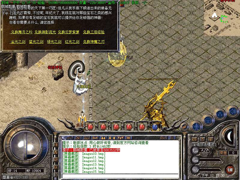 <69,0>牛魔大厅门口的裁决之神可以用宝石合成彩色裁决,属性很不错.宝石在盟重祭祀后人处合成..