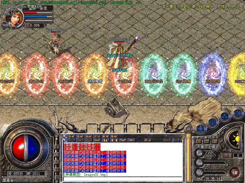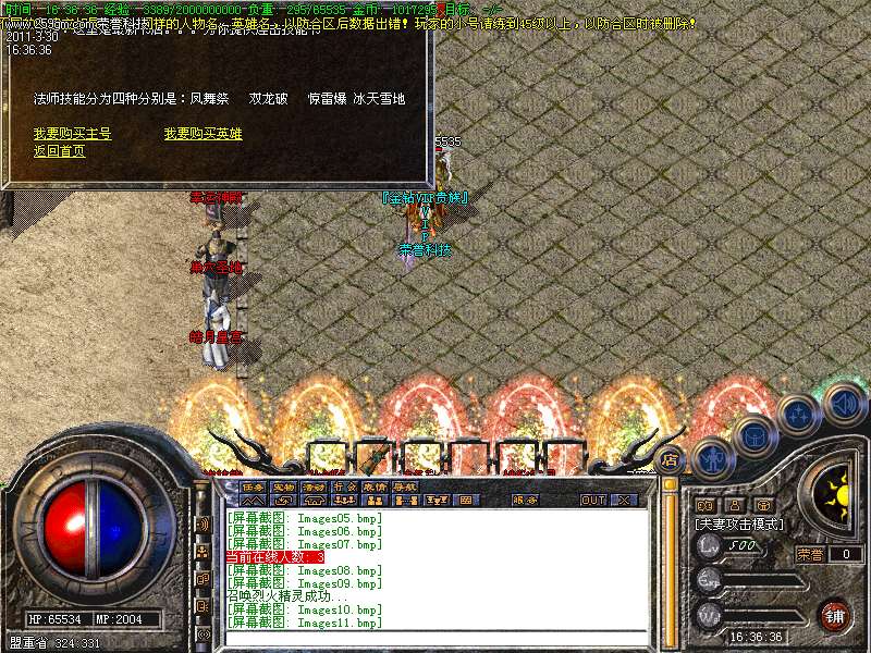 5、焰火屠魔:进入需要6个焰火。里面有天之怪物,出幸运项链几率高!每2小时刷新一个屠魔教主!